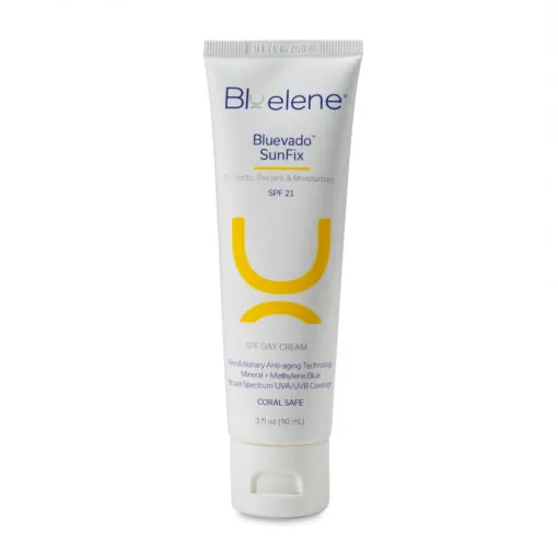 Bluevado SunFix is the first FDA-approved anti-aging sunscreen with Methylene Blue. Methylene Blue’s unique ability to promote skin cell health, repair/delay skin aging and protect against UVA and UVB radiation, is now captured in the bravado of this revolutionary SPF Day Cream. 90ml